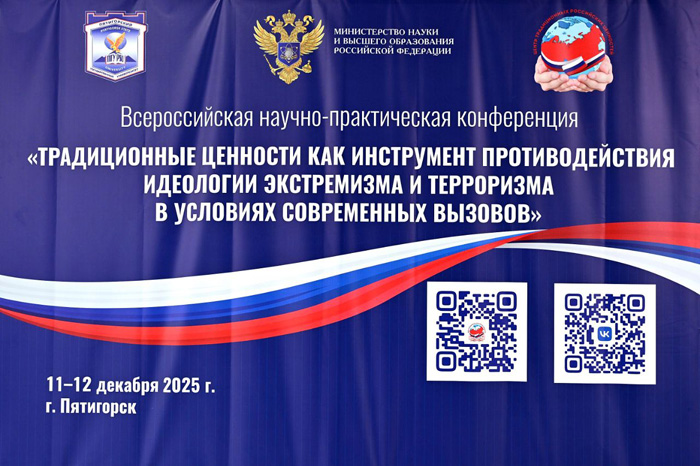 В г. Пятигорске на площадке Центра сохранения и укрепления традиционных российских духовно-нравственных ценностей Пятигорского государственного университета с 11 по 12 декабря 2025 г. прошла Всероссийская научно-практическая конференция «Традиционные ценности как инструмент противодействия идеологии экстремизма и терроризма в условиях современных вызовов».