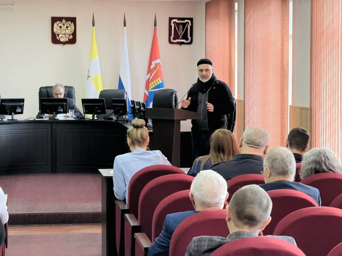 В станице Курской 12 февраля 2026 года в зале заседания администрации муниципального округа состоялось совещание с руководителями религиозных организаций, лидерами национальных диаспор и этнических общностей, в котором приняли участие представители правоохранительных органов, сотрудники прокуратуры.