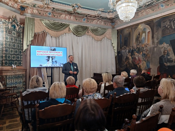 В Кисловодском литературно-музыкальном музее «Дача Шаляпина» 20 апреля гости музея стали участниками разговора о многообразии культур народов планеты, о безвозвратно утраченных в результате террористических актов и вооруженных конфликтов шедеврах мирового искусства и архитектуры, о той беззащитности от действий религиозных фанатиков, подстрекаемыми террористами, и пугающей хрупкости которой подвержены великие творения человеческих рук.