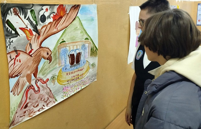 В фойе школе №3 города-курорта Железноводска 8 ноября прошла выставка детских художественных работ «Мир - без террора».