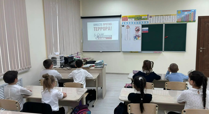 В формате познавательной беседы учитель доступно рассказал о базовых навыках безопасности, пояснил что такое террор и почему важно быть осторожными и внимательными. Дети обсудили правила поведения в опасных ситуациях: не разговаривать с незнакомыми людьми, не брать и не поднимать различные вещи и предметы, немедленно сообщать взрослым о подозрительных действиях; изучили действия при эвакуации.