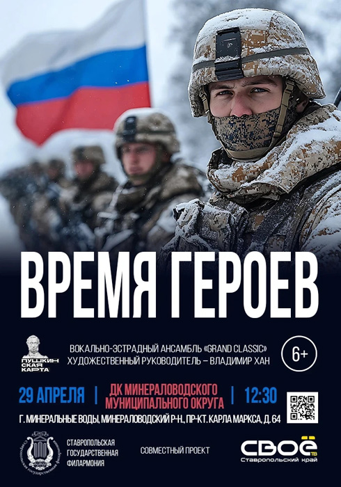 В городе Минеральные Воды 29 апреля стартовала программа «Время героев» — совместная инициатива Ставропольской государственной филармонии и телекомпании «Своё ТВ», посвященная новому поколению защитников Отечества — участникам специальной военной операции.